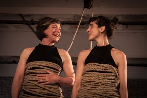 Featured photo: Karen Christopher and Sophie Grodin in ‘Miles and Miles’ at Chisenhale Dance Space. Photo by Manu Valcarce, 2016